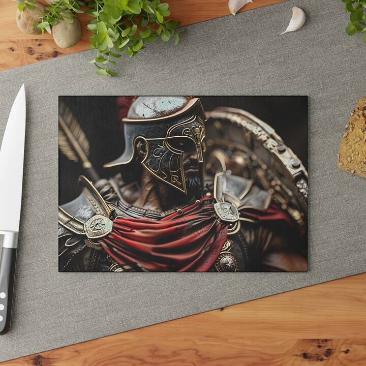 Transform your kitchen into a gallery of timeless art with our exquisite glass cutting boards, where ancient legends meet modern functionality. Each board features stunning renditions of mythological beings and historical figures, meticulously captured in vivid detail beneath a durable, tempered glass surface. From the mighty Balinese warriors wielding his thunderbolt to the mysterious tales of the 1001 Arabian Nights, these pieces serve as both practical kitchen tools and conversation-starting décor. The non-porous, hygenic glass surface is knife-friendly and easy to clean, while the rounded edges and non-slip feet ensure safe, stable use.