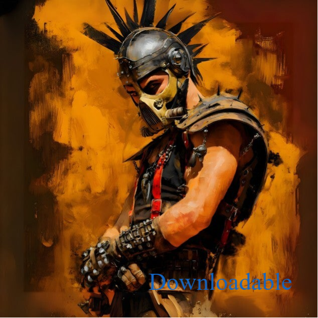 ๐๏ธ๐This ferocious Mad Max warrior emerges from apocalyptic flames in stunning detail, crowned with a menacing spiked helmet that commands respect in the wasteland. Bold brushstrokes capture every rivet of his battle-worn leather armor, while dramatic orange and amber tones create an inferno backdrop of post-apocalyptic chaos. The artist masterfully renders weathered textures, from studded gauntlets to tactical gear, embodying the raw survival instinct of the desert roads. This powerful portrait perfectly captures the gritty, unforgiving spirit of the wasteland warrior ethos. โ๏ธ๐ฅ